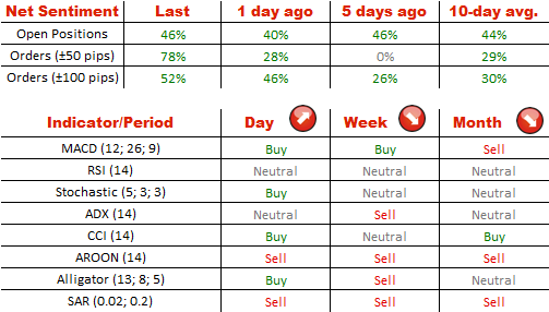 More than three out of four traders (76%) expect the U.S. Dollar to increase in value relative to the Swiss Franc. The positive outlook is also provided by the orders placed 100 pips up and down from the spot—76% of them are to purchase the greenback.