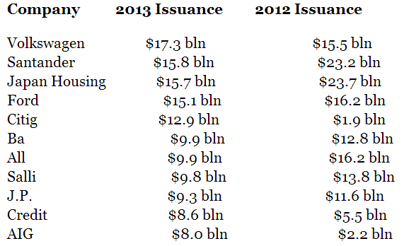 The packaged loan market. Here are the entities providing the most fodder for the adventurous world of asset backed securitization. AIG and Citigroup are at it again. The two companies saw the biggest growth in ABS issuance last year.