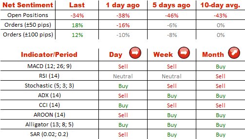 The sentiment is still distinctly bearish with respect to the British Pound, since as many as 67% of open positions are short. On the other hand, the share of commands to acquire the Sterling went up from 45% to 56%.