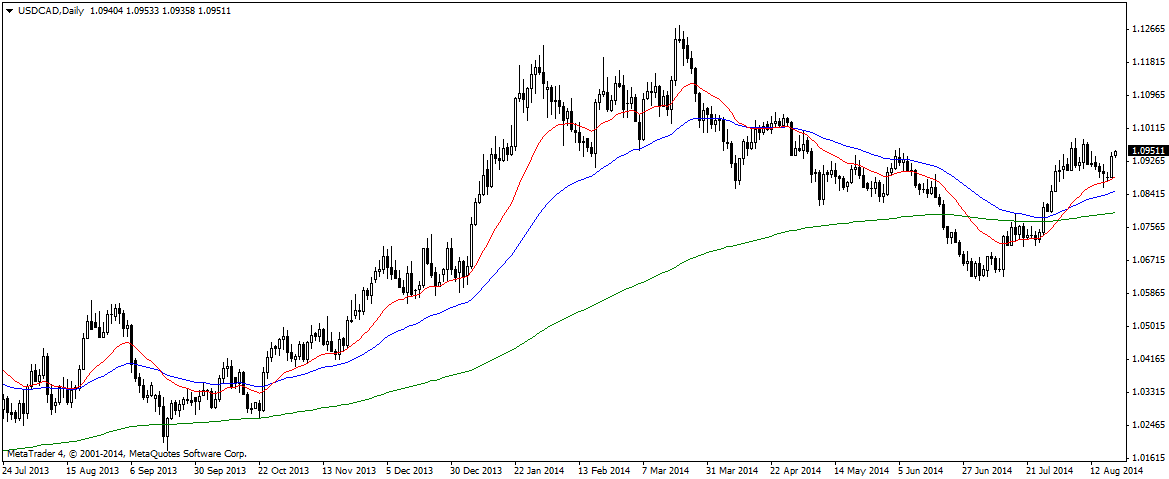 USD/CAD – decisive rally in the Loonie indicates bullish mood with some resistance at the 1.0955 level. Poised to go higher if we see a close above those levels.