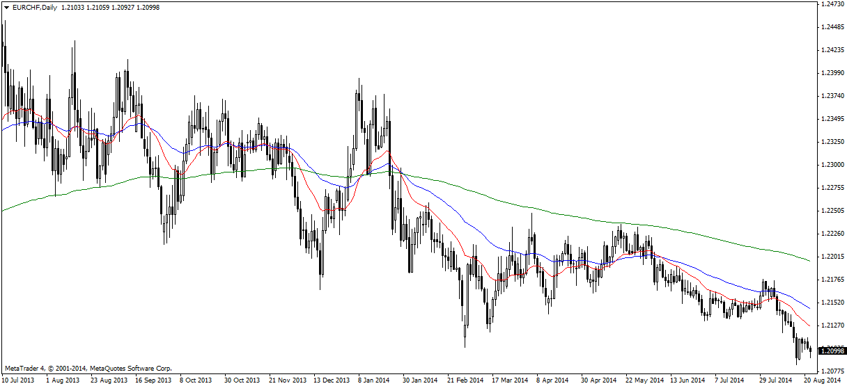 EUR/CHF A lower close on Friday with support being found at the 1.2090 levels. This market remains bearish for now and weakness persists. Any upside might prove short lived.