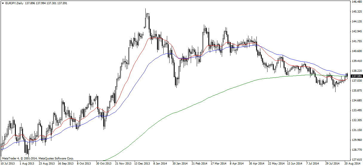 EUR/JPY pair ended the week just below the 200 DMA finding strong support at the 137.60 handle. A close above 138 and a break out from this resistance level might encourage more buyers to step in. Bullish this market for now.