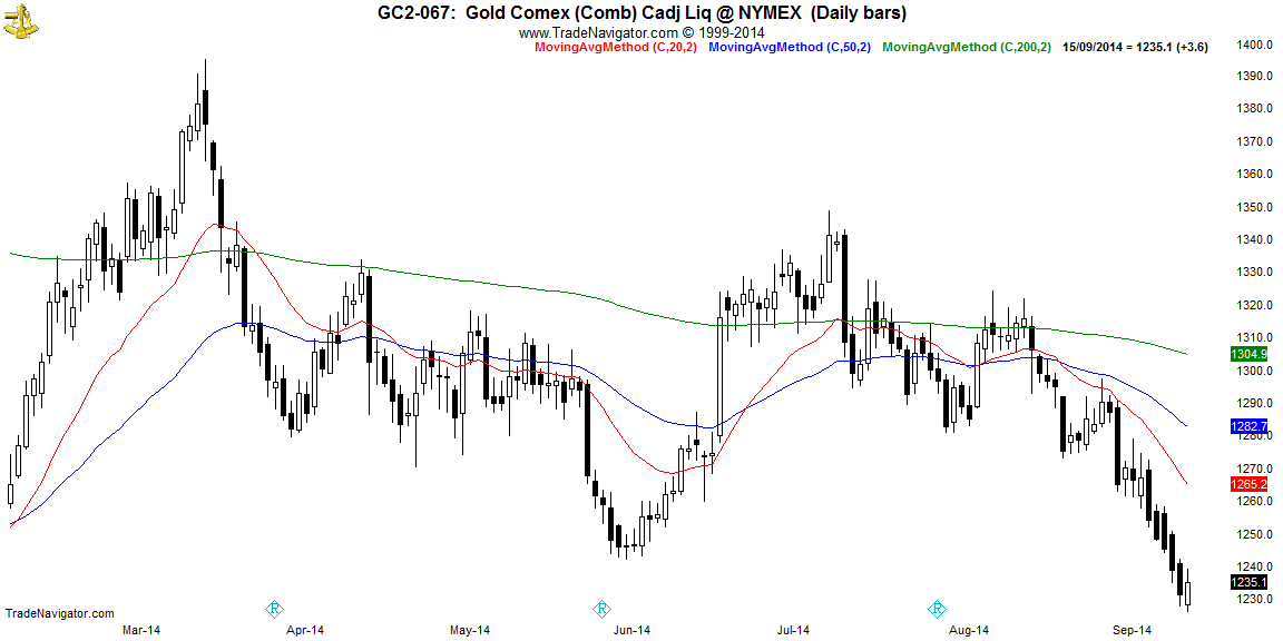 Gold A pause to the gold sell off on Monday after breaking below the $1230 level and bouncing back to close at $1235. Bearish with some bouncing around in the next couple of sessions likely.
