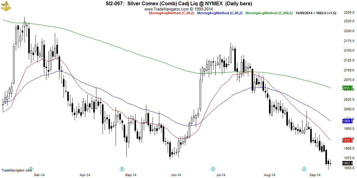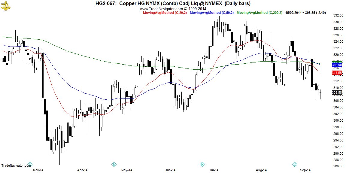 Copper (Comex) Action in the Dec 14 Copper contract suggests that the sell-off might be taking a pause for now with strong support at the $306 level. A close below this level and in the $305 range would likely trigger a further down move towards $300.