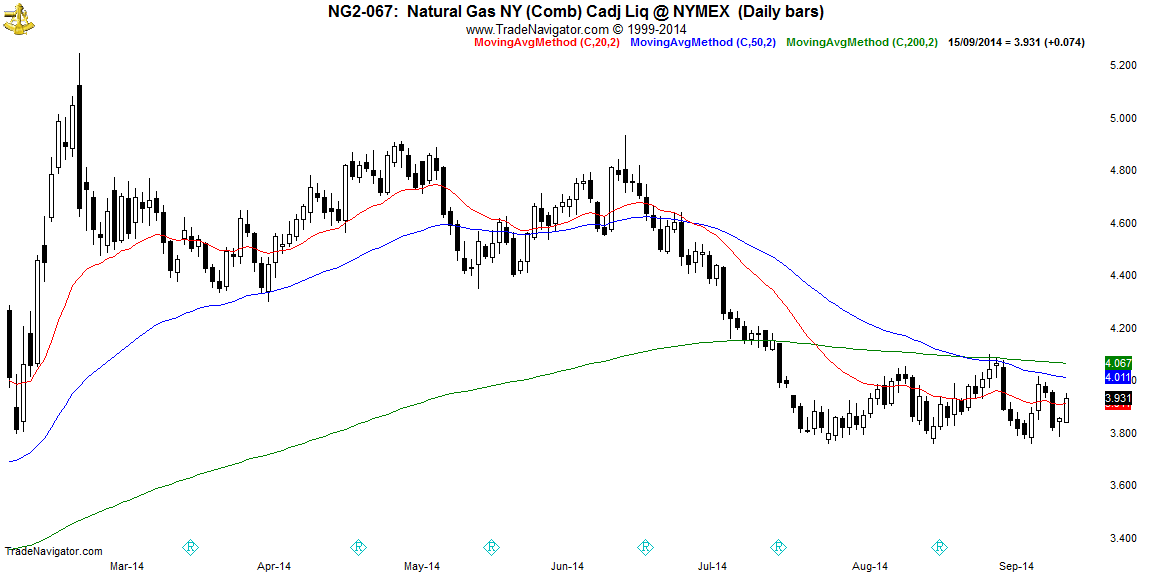 Natural Gas closed above the 20 DMA on Monday at 3.93 and continues to remain within its recent range. Sideways action most likely to continue.