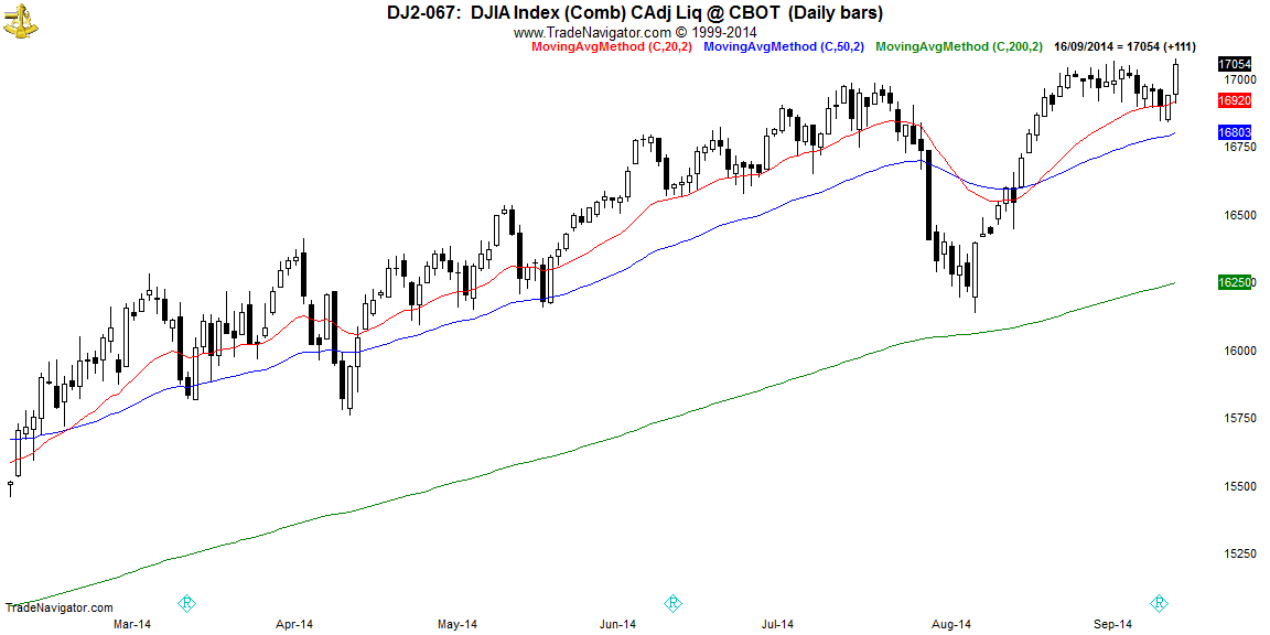 Dow 30 The Dec 14 contract of the Dow gained 111 points on Tuesday closing back above the 17000 area and the all-time high for the contract. This is bullish and suggests the upswing is likely to have extend further.