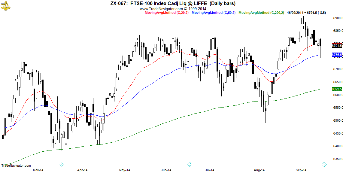 FTSE100 Volatile day for the FTSE which closed lower and below the 20 DMA and 6800 resistance level. This is bearish for the FTSE and suggests we might be heading lower. Support at the 6750 area.