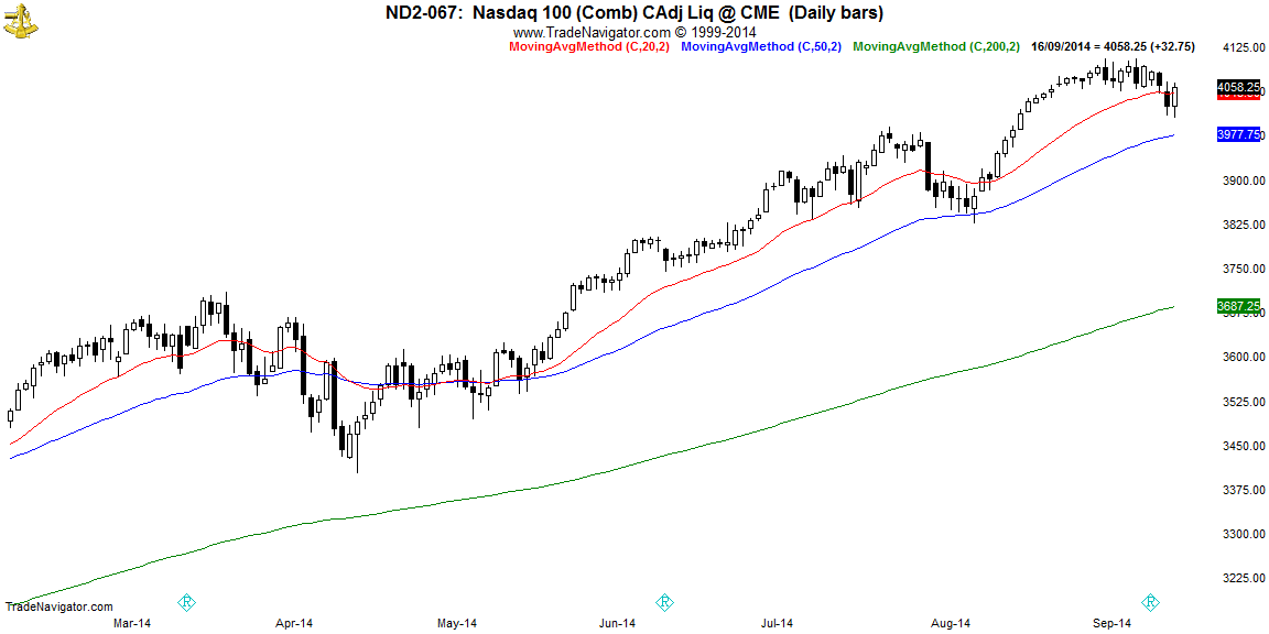 NASDAQ 100 The Nasdaq closed higher on Tuesday and managed to get above the 20 DMA. The recent correction was shot lived and likely over as the Nasdaq prepares for the next up leg.