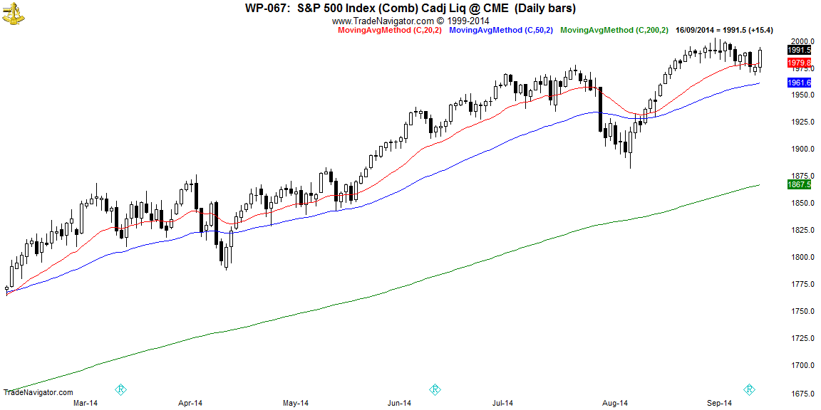 S&P 500 bulls back in action on Tuesday pushing the Dec 14 contract back into the 1990 area into what looks like the decisive push above 2000. Bullish.