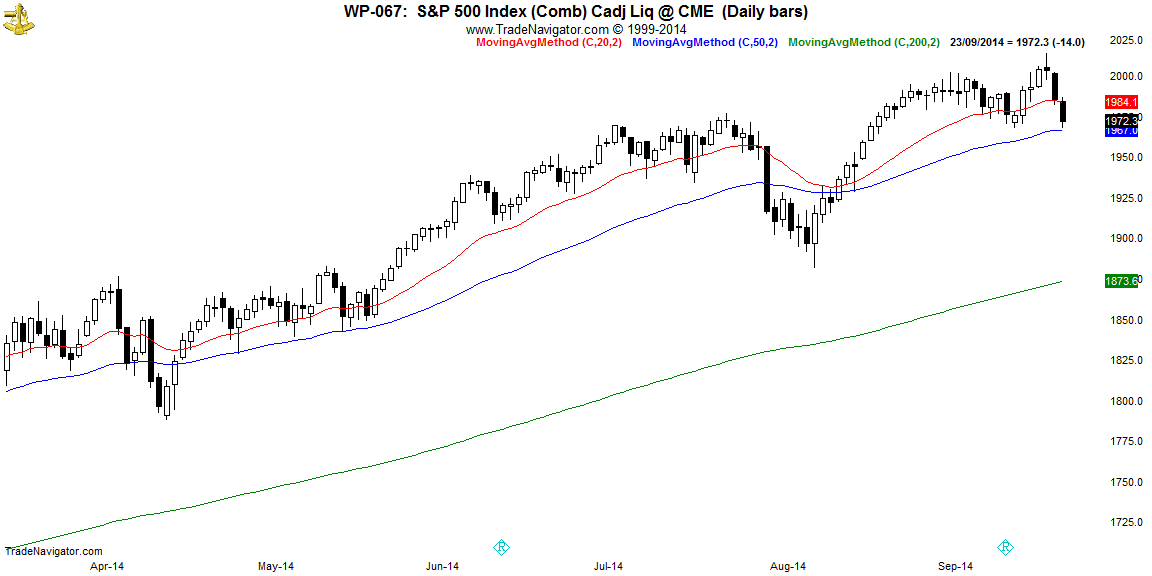 S&P 500 Further consolidation of the S&P500 on Tuesday dipping below 20DMA and testing the 50DMA. A close below the 50 DMA find support at the 1960 level. Market likely to grind it out at these levels for now.