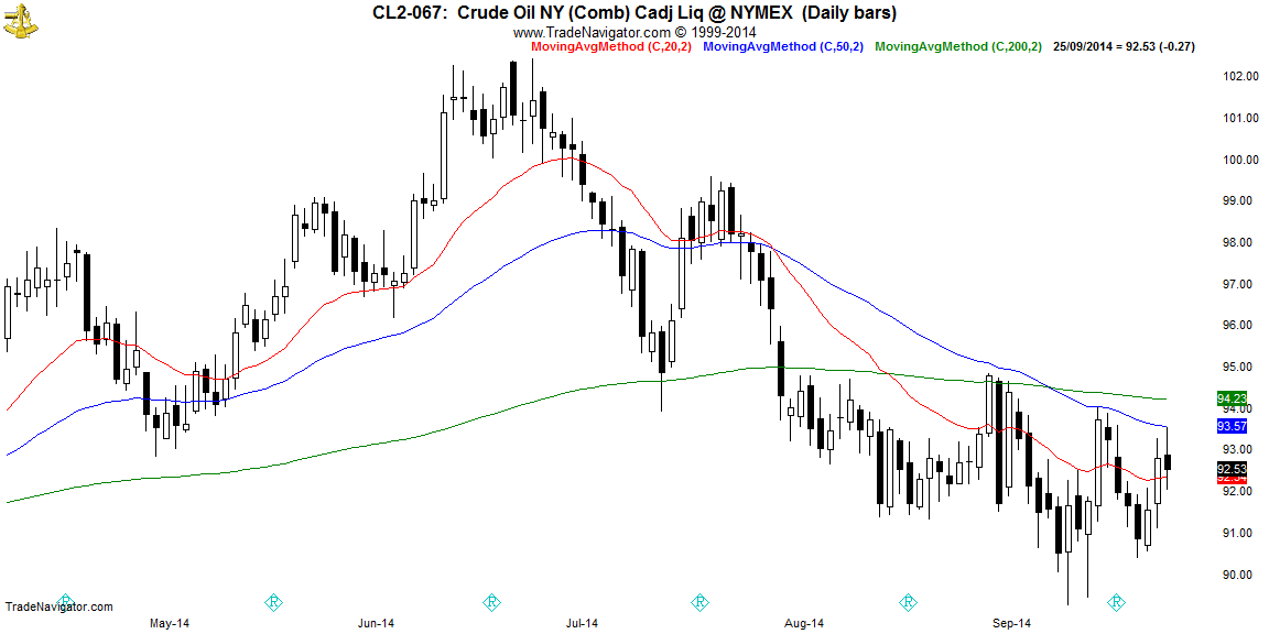 Crude Oil Crude tried to move higher on Thursday only to find resistance at the 50 DMA. Range bound action likely to continue. US Dollar strength weighing crude prices down for now with bias to the downside.