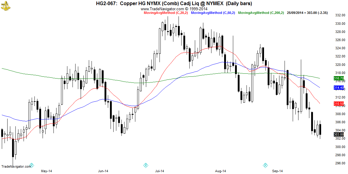 Copper (Comex) Copper flirt with key $300 level on Thursday. A close below is likely to initiate a further sell-off to the mid $290’s. Bearish.