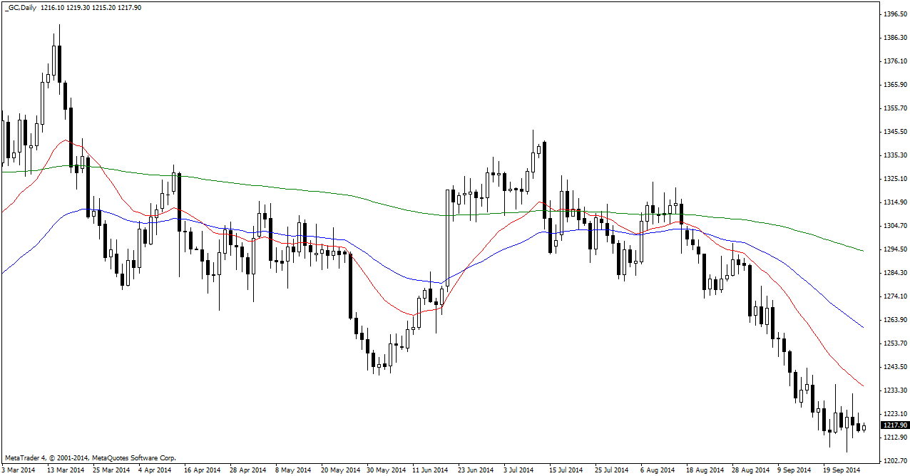 Gold consolidation at the $1215 area where it is forming a base. Likely to trade within a tight range $1215-$1225 while it looks for further direction. Somewhat downside biased at the moment. Bearish.
