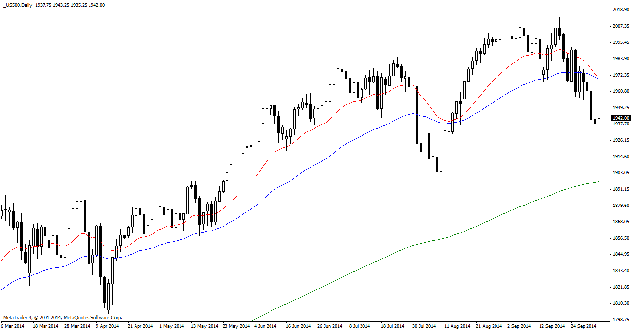 S&P 500 Volatile day for the S&P 500 which dropped to 1918 intraday. The intraday bounce and yesterday’s action suggests the recent sell-off might be over at least for now. A close above 1950 and further above at 1970 put the bulls back in control.