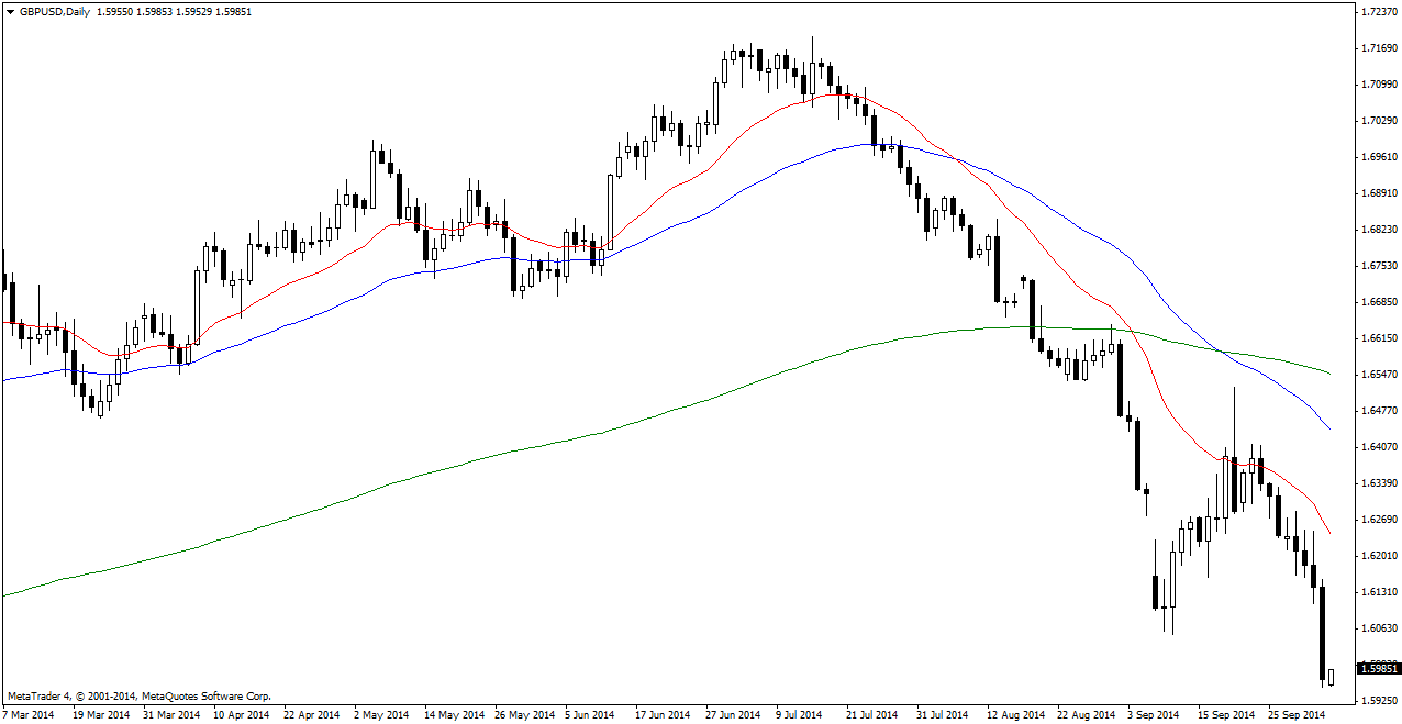 GBP/USD sell-off on Friday slicing through 1.60 handle signalling a “sell only” market with further downside becoming imminent. Some bounce back is likely. Support in the 1.5925 area. Bearish.