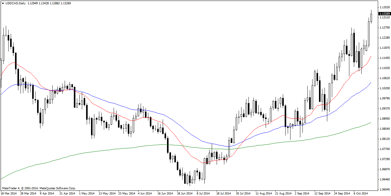 USD/CAD broke out on Tuesday pushing through resistance and recent highs to test the 1.13 level with strong bullish momentum picking up. The market is likely to push higher from here before hitting significant resistance. Bullish.