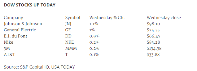 Source: Usatoday- Six Dow stocks actually up today