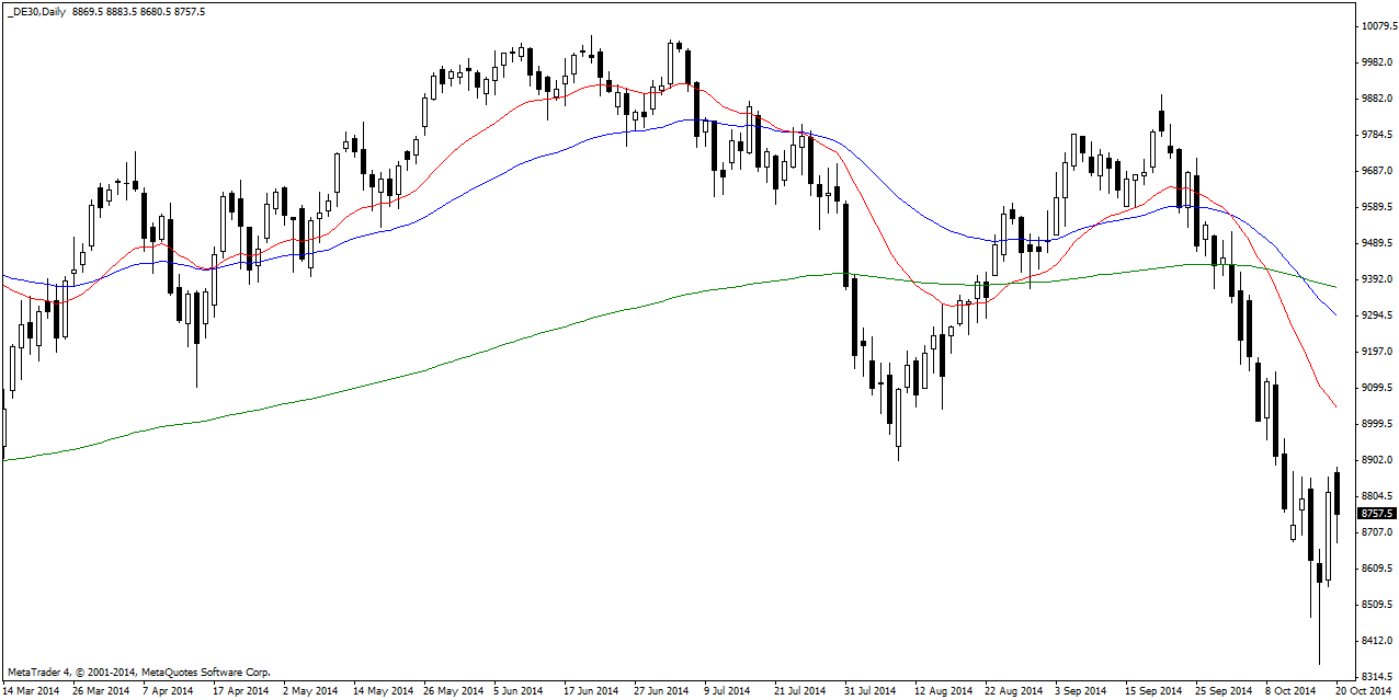DAX 30 The DAX closed lower on Monday after selling off and dipping below 8700 intraday. The index appears to be aiming for the 8900 resistance level which is a key level if the DAX is going to head any higher. Bearish bias remains intact.