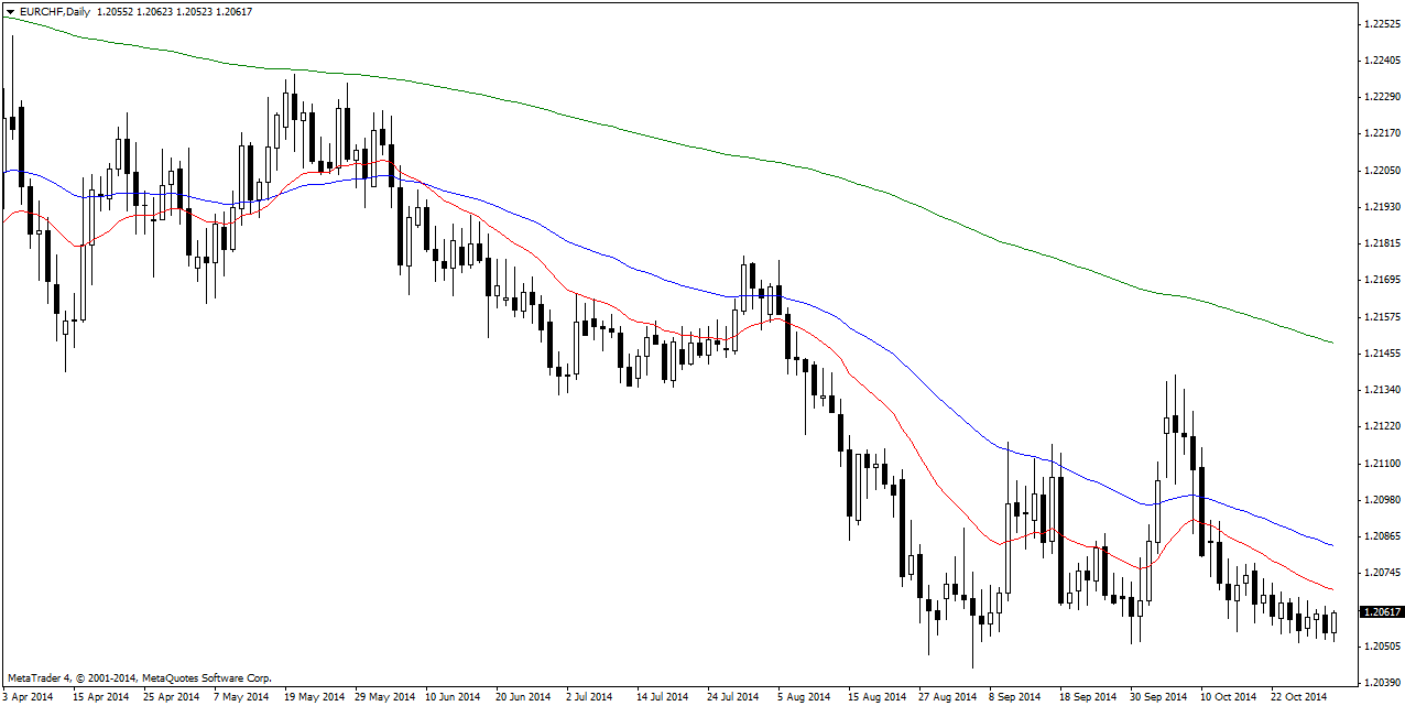 EUR/CHF grinding lower during Thursday’s trading. The pair appears to be establishing a base at 1.2055 area and is likely to continue bouncing around in the vicinity. Neutral.