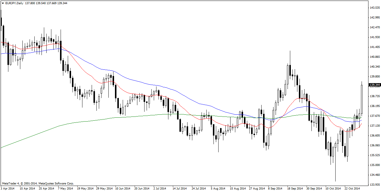 EUR/JPY rallied above the 200 DMA and the 138.00 handle during intraday trading on Thursday. Upside momentum is on the rise with a close above the 138.00 handle extending price to 138.80-139.00. Bullish.