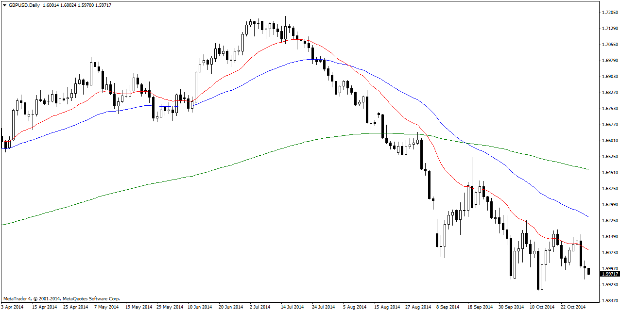 GBP/USD The GBPUSD sold off during intraday trading dipping below the 1.60 handle and finding support at the 1.5950 handle. The market looks like its ready to head lower and a close below the 1.5950 handle extends to recent lows at 1.5870-90. Bearish.