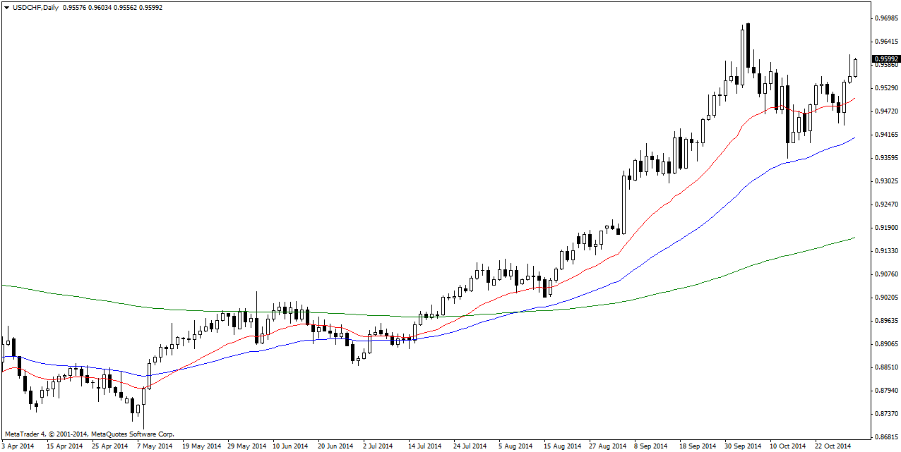 USD/CHF The USDCHF climbed higher on Thursday managing to briefly get above the 0.96 handle before correcting lower and closing in the supportive area of 0.9550. Pair is setting itself up to go higher and a close above 0.96 opens that way. Bullish.