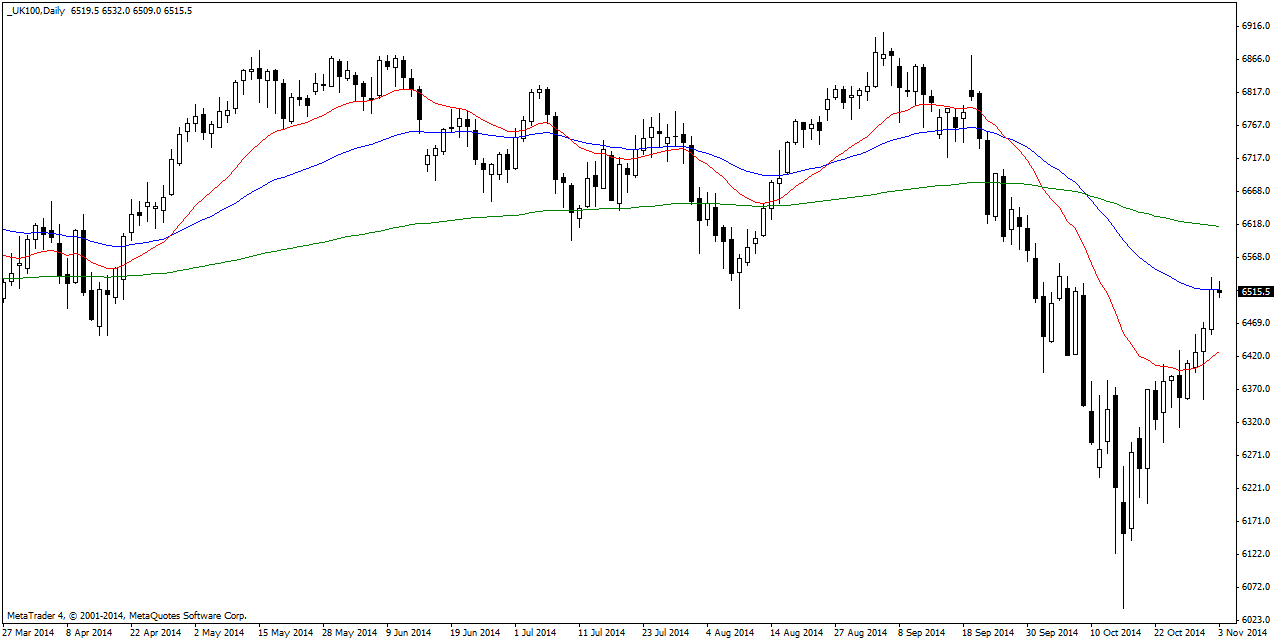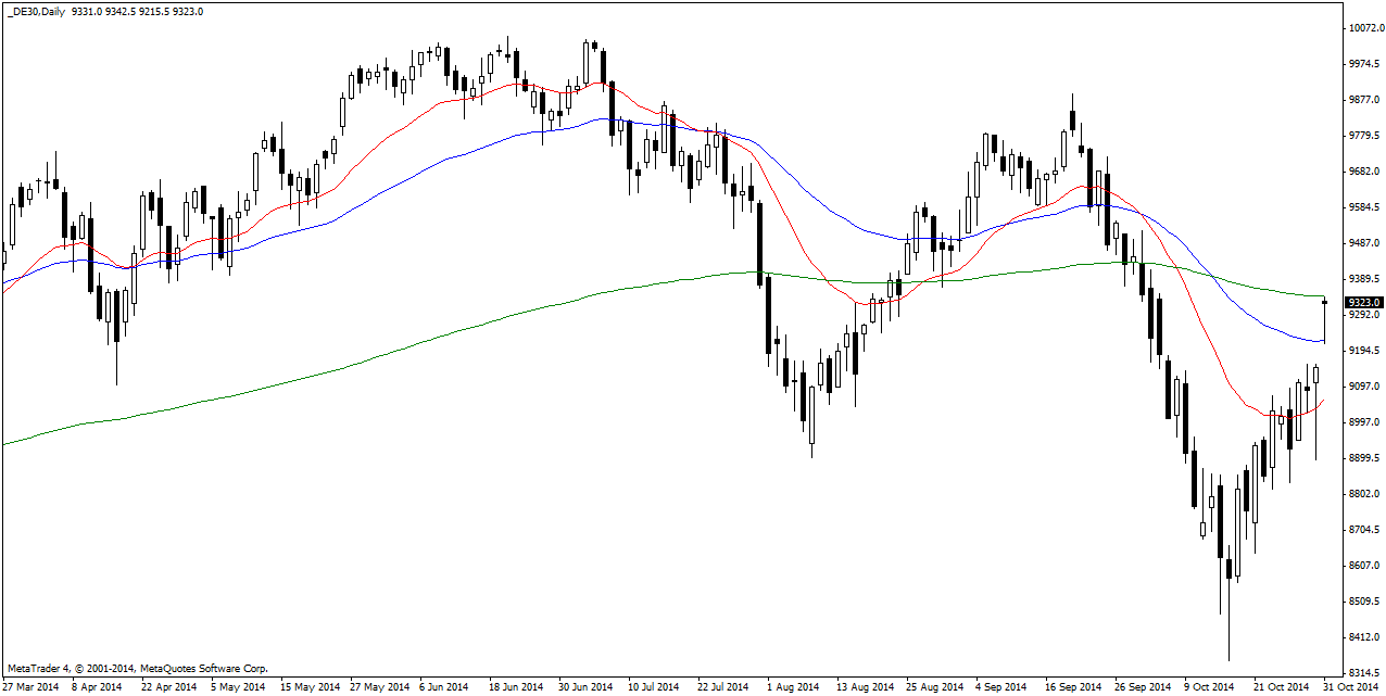 DAX 30 The DAX gapped up on Fridays trading session and has now covered 900 points since its recent lows in mid-October. The index is now just beneath the 200 DMA which it is likely to clear as bullish momentum remains on the rise. Resistance above at 9480.