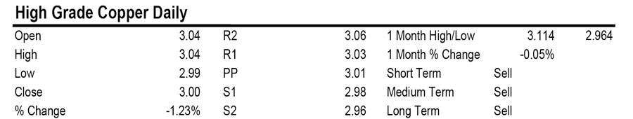 Copper has broken the 3.06 line and it will target 3.1 next. A reversal under 3.02 will target 3 next and market will still in trading range around 3 – 3.08 level. No big movement expected in short term currently.