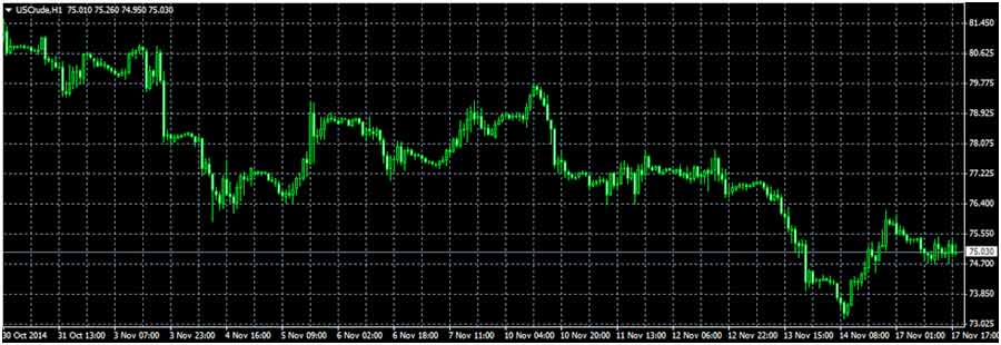 Crude Oil has rebounded some of their last movement but overall, the downtrend still intact. Crude Oil can’t break 76.5 resistance line and move in sideways for now. A break under 74.6 level will target 73 next.