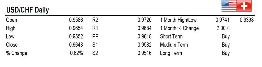 Bullish candle with strong buying interest and support for the CHF in the 0.9600 area. Consolidation at this level with bullish momentum waning. A close below yesterdays low sees pair testing 0.95 area.