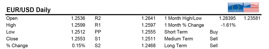 Flat day edging slightly higher on the close after testing resistance at the 1.26 handle. A close above extends to 1.2630-50 area. More consolidation in the 1.25-26 area likely to remain the theme of the day. Holding above 1.2520 on the day maintains short term upside bias.
