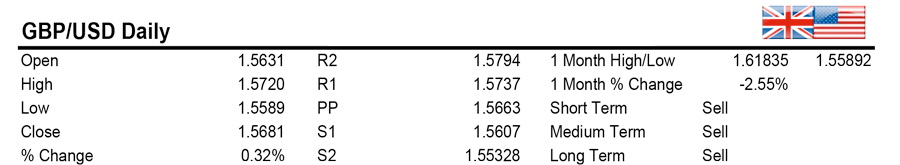 Early session rally following BOE minutes suggest split decisions on rate hikes. Cable remains in a strong down trend with any attempts to break higher finding sellers overwhelming the balance to the downside. A close above 1.5750 would change short term bearish outlook however longer term negativity likely to remain for some time in the Pound.
