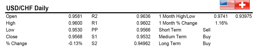 Spike lower on the early session followed by sideways trading for USDCHF with little action from either side of the fence. Support coming in at the 0.9510-30 area. On the upside a test of 0.96 handle likely as EURCHF continues to drift closer to the 1.20 handle where SNB action becomes a real possibility.