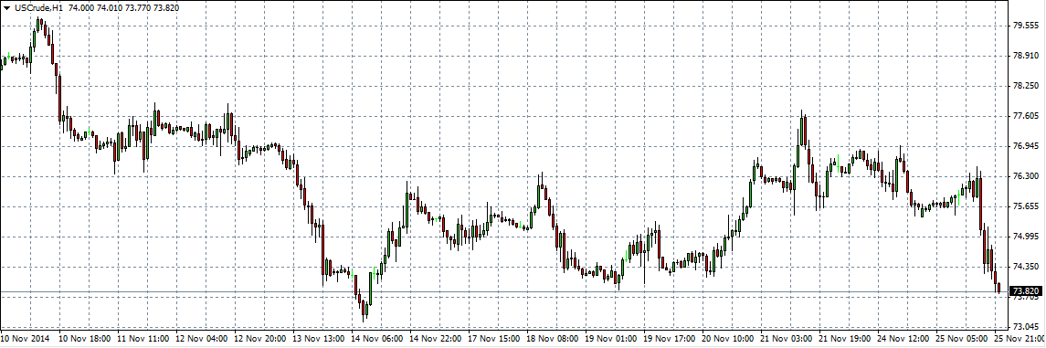 Crude Oil suddenly made a sharp break and from 76.3 and now is trading around 73.8 level. A new lower would be expected and the next target is 73. A reversal to 75.4 will target 76 again for the higher move.