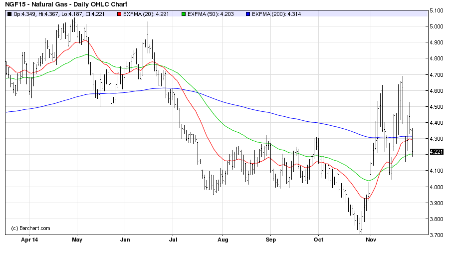 Natural Gas sold off in a vary light trading session where volume was light due to the US Thanksgiving vacation. NG is likely to bounce around and test support in the $4.00 area.