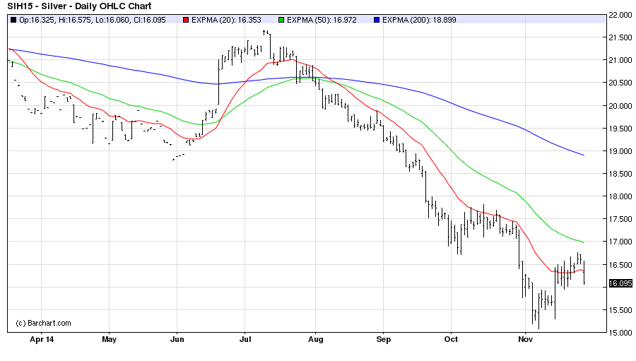 Silver sold off on Thursday giving back much of the recent gains. Silver likely to be re-entering new down swing with a break below $16.00 leading to new lows and a likely retest of the $15.00 handle.