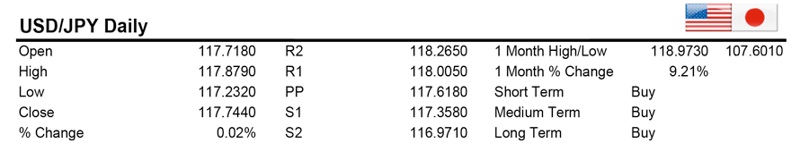 Ranging session for the USDJPY which closed essentially unchanged on the day. A break above 118 see the pair entering a fresh drive to new highs. On the downside support in the 117.00-25 area remains strong and upside bias suggests a base somewhere in this vicinity.