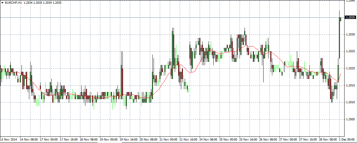 EUR/CHF still trading at 1.2012 level but back to 1.2035 now. The next target is 1.205 and a lower leg under 1.202 will bring back market into the last sideways trading range.