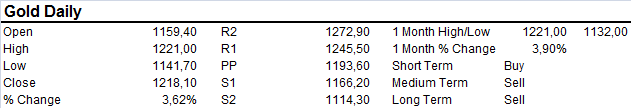 Highly volatile trading session for Gold which had a $79.00 swing intraday on Monday. Gold appears well supported in the $1140-50 area for now and does not appear ready to go lower. On the upside a close above $1225 extends to $1250 key resistance level. Some consolidation and range bound action likely following Mondays session.