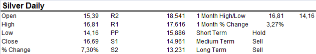 Silver trading session on Monday very much like riding a bucking bronco with wild swings with the futures contract travelling $17300 within the trading session. Yesterdays session suggests Silver is likely to attempt a push towards $17.00 after it digests yesterdays wild move.