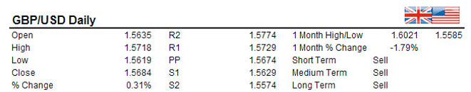GBPUSD early session attempt to run higher was met with sellers stepping in to push pair downwards. Market appears to be in consolidation mode within the 1.5585-1.5765 range. A break below here suggests further break down in the market and extends to the 1.5525 area. On the upside any rallies likely to be faded and a break above current range sees pair running into strong resistance at 1.5800-25.