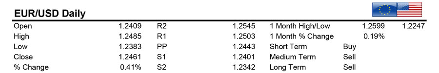EURUSD rallied back above the 20 DMA pushing above 1.2450 resistance. Next resistance above at 1.2475-85. Upside momentum build up gathering pace with possible push towards 1.25 handle. A close above likely to give market extra push higher as shorts get stopped out in this area. Short term bullish on the EUR.