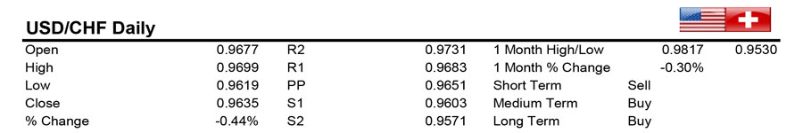 USDCHF ended the week on a negative note after being under sustained pressure throughout the week. Close below the 20 DMA suggests further downside possibly on the horizon. Support below at 0.9590-0.9600. Resistance on the upside now the 20 DMA at 0.9675 and above at 0.9690.