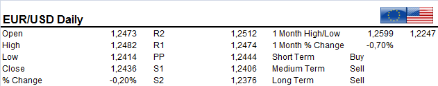 EURUSD attempt to rally ran into resistance at 1.2485 area. Clearance of this level extends to 1.25 handle. On the downside support 1.2410-25 just beneath the 20 DMA appers to be solid for now. Market looks ready to consolidate in the 1.2420-80 band short term. Bias remains strongly to the bears.