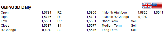 USDCAD broke to new highs on Monday closing at the highs of the day suggesting further upside for the pair. Yesterdays run brings pair into over bought territory indicating possible sell-off and profit taking for US$ bulls. Support in the 1.1590 area. Overall sentiment favors the US$ to strengthen against the Canadian Dollar.