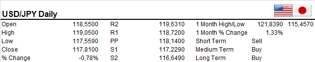 USDJPY gave some dipping below the 20 DMA on Monday finding support at 117.50. Downside momentum on the rise with a further decline towards 1117.00 handle likely. Resistance now at the 20 DMA/118.00 level. A break below 117.00 extends to 116.40-60 area in the short term.