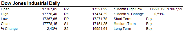 The Dow broke out on Thursday pushing past the 17700 level suggesting the end of the recent downturn. A break above the 17800 level puts the Dow in the sights of recent highs. Bullish momentum back in the market.