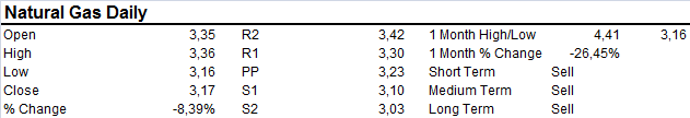 Natural Gas gapped down on the open and broke lower from there. New down leg likely to extend to a test of the $3.00 handle which is the next strong support area. Volatility likely to be significant as we head lower with spikes to either to be expected.