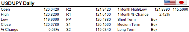 USDJPY edged higher on the day falling short of the 121 handle by about 20 pips. Upmove likely to continue as momentum remains strong. A break of 121 extends to previous high at 121.84. Corrections nn the downside find support at 119.85-95.