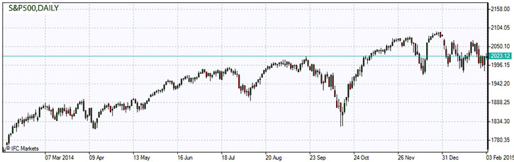 US markets recorded solid gains on Monday after a choppy trading session as investor sentiment improved with rebounding oil prices. Energy sector shares led the gains. Markets discounted disappointing economic news. The ISM report showed that manufacturing activity slowed in US, the manufacturing index fell to 53.5% in January from 55.1% in December, marking the worst performance in a year. At the same time, consumer spending didn’t increase with the falling oil price as it was widely expected – it fell 0.3% in December while personal income rose 0.3%. The Federal Reserve’s preferred inflation measure, the price index for personal consumption expenditures, fell 0.2% from November. The commerce Department report showed construction spending rose 0.4% in December, less than expected. The latest batch of economic data indicate that the US economic growth is slowing down. US dollar weakened against commodity currencies as oil rose. Today at 16:00 CET December Factory Orders will be released in US. The outlook is negative with the factory orders expected to decrease further after falling for four consecutive months.